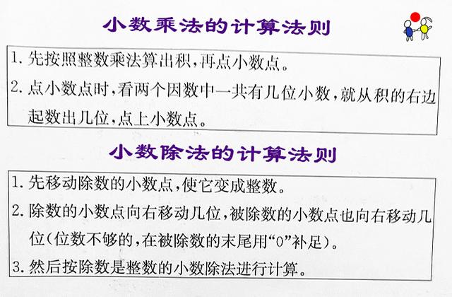 ③ 要明白小数点的移位规律(小数点搬家):小数点向左移动一位,小数就缩小为原数的十分之一;向左移动两位,就缩小为原数的百分之一……小数点向右移动一位,小数就扩大到原数的十倍;向右移动两位,就扩大到原数的一百倍……